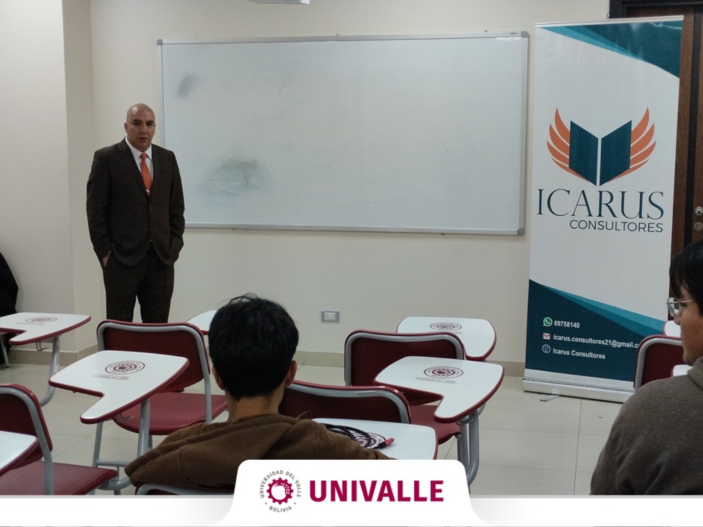 El expositor principal, Lic. Ricardo Oropeza, Gerente General de ICARUS S.R.L., compartió su experiencia en el ámbito de la gestión pública, brindando una perspectiva actualizada sobre los desafíos y oportunidades del sistema SICOES. Su intervención fue valorada por los estudiantes por su claridad conceptual, enfoque práctico y relevancia profesional.