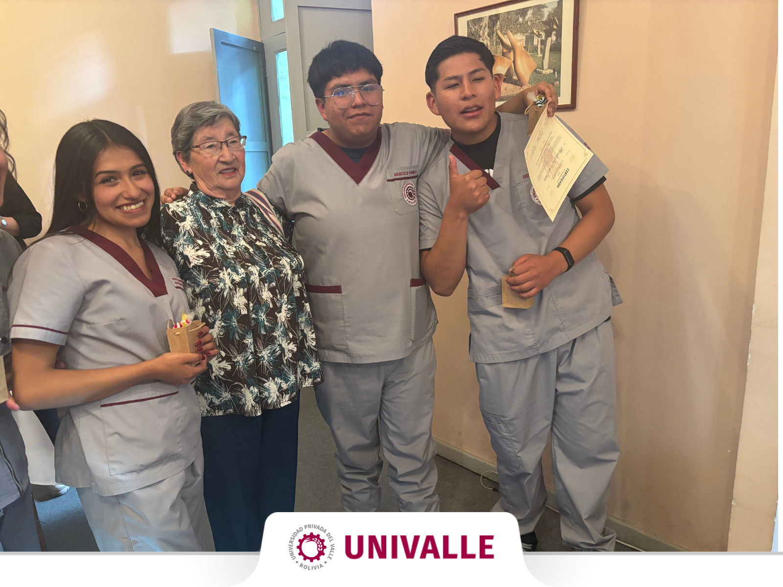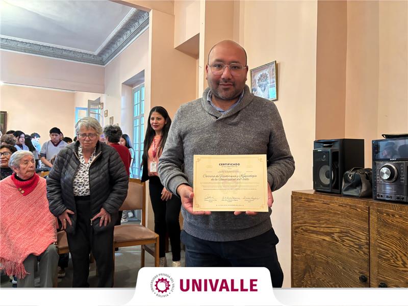 El Comité de Damas Paceñas otorgó un significativo reconocimiento a los estudiantes de cuarto semestre de la carrera de Fisioterapia y Kinesiología de la Universidad Privada del Valle – Sede La Paz, por la destacada labor de voluntariado realizada durante toda la gestión 2/2025 en el Centro de Adultos Mayores “Yolanda Pando Zalles”, en el marco de la asignatura Fisiopatología.